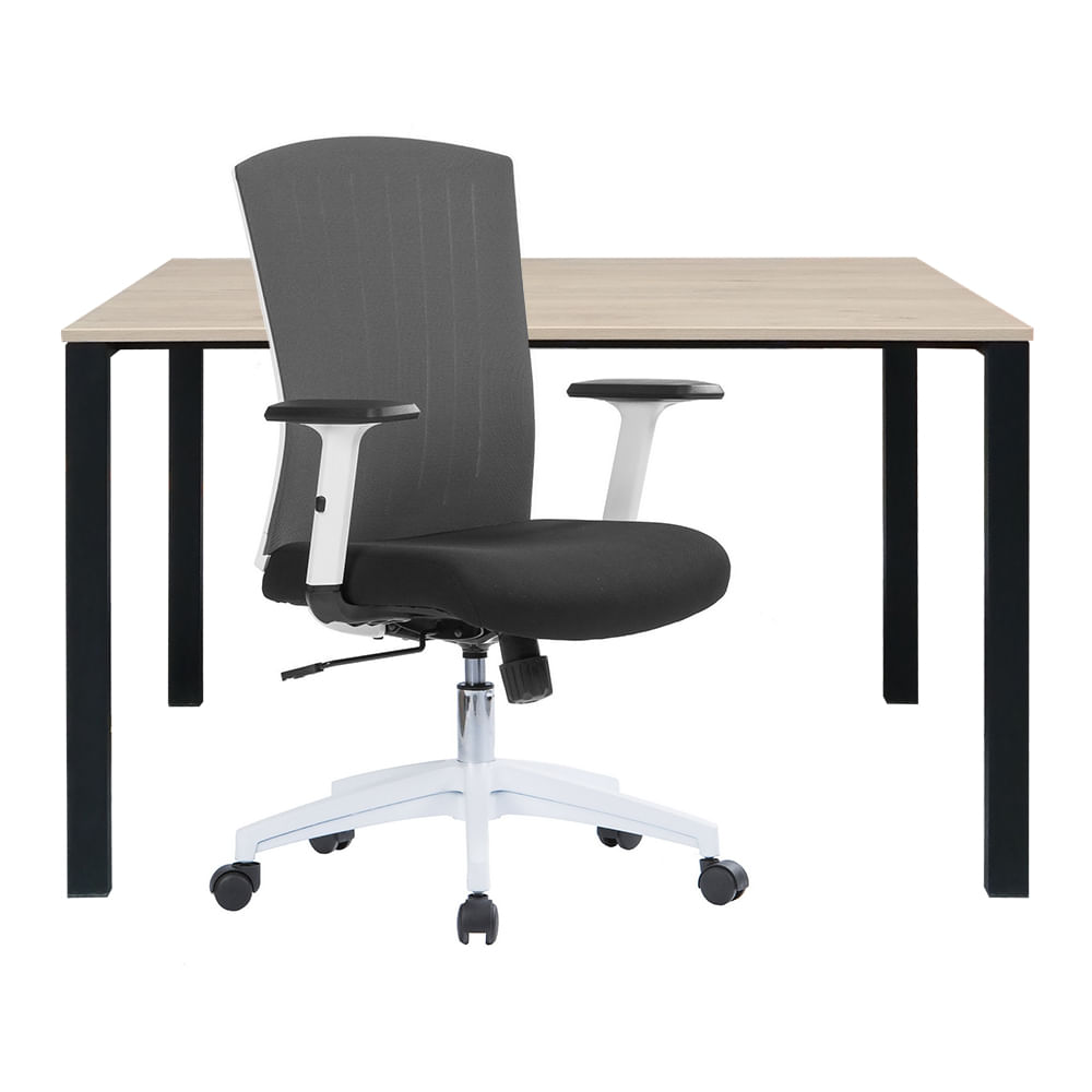 1 Escritorio Krona Rovere Base Negro 90x50 + 1 Silla Work Lux