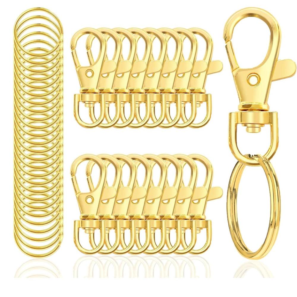 100 Ganchos Giratorio Mosqueton Mas 100 Anillos Aros de Llavero Dorado