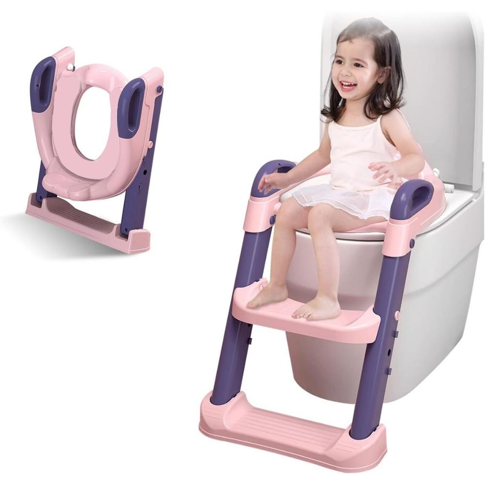 Adaptador de Baño y Escalera Portátil para Niños Rosa