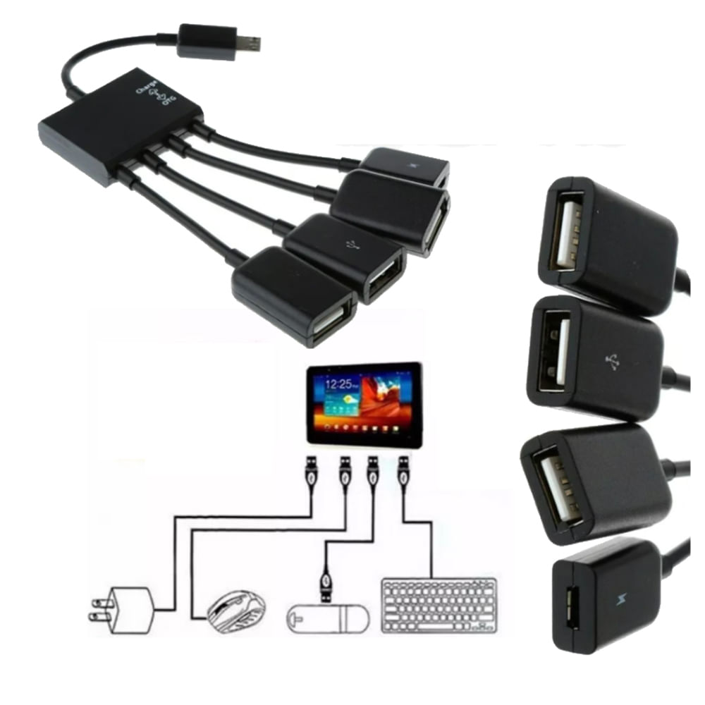 Adaptador OTG Pulpo V8 para celular Hub 3 puertos USB Carga 4 en 1