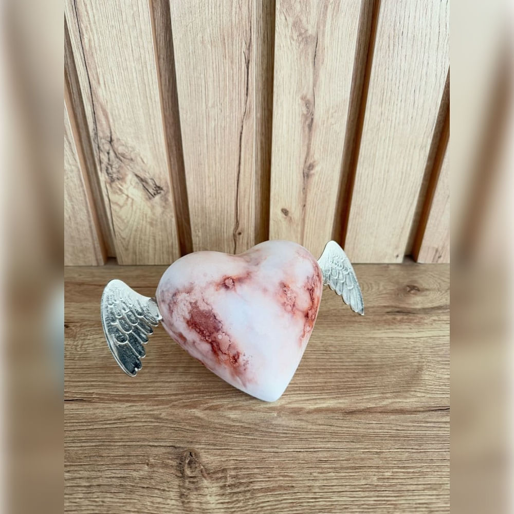 Adorno Corazon con Alas Marble Rose 20x12x12 cm