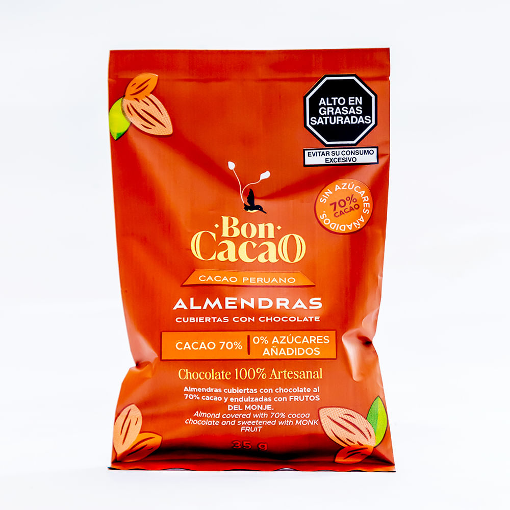 Almendras cubiertas en chocolate sin azúcar añadido x 35g.