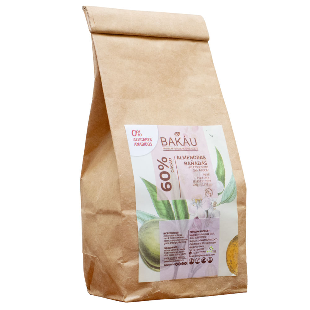 Almendras Cubiertas en Chocolate Zero Azúcar 65% Cacao x 500g