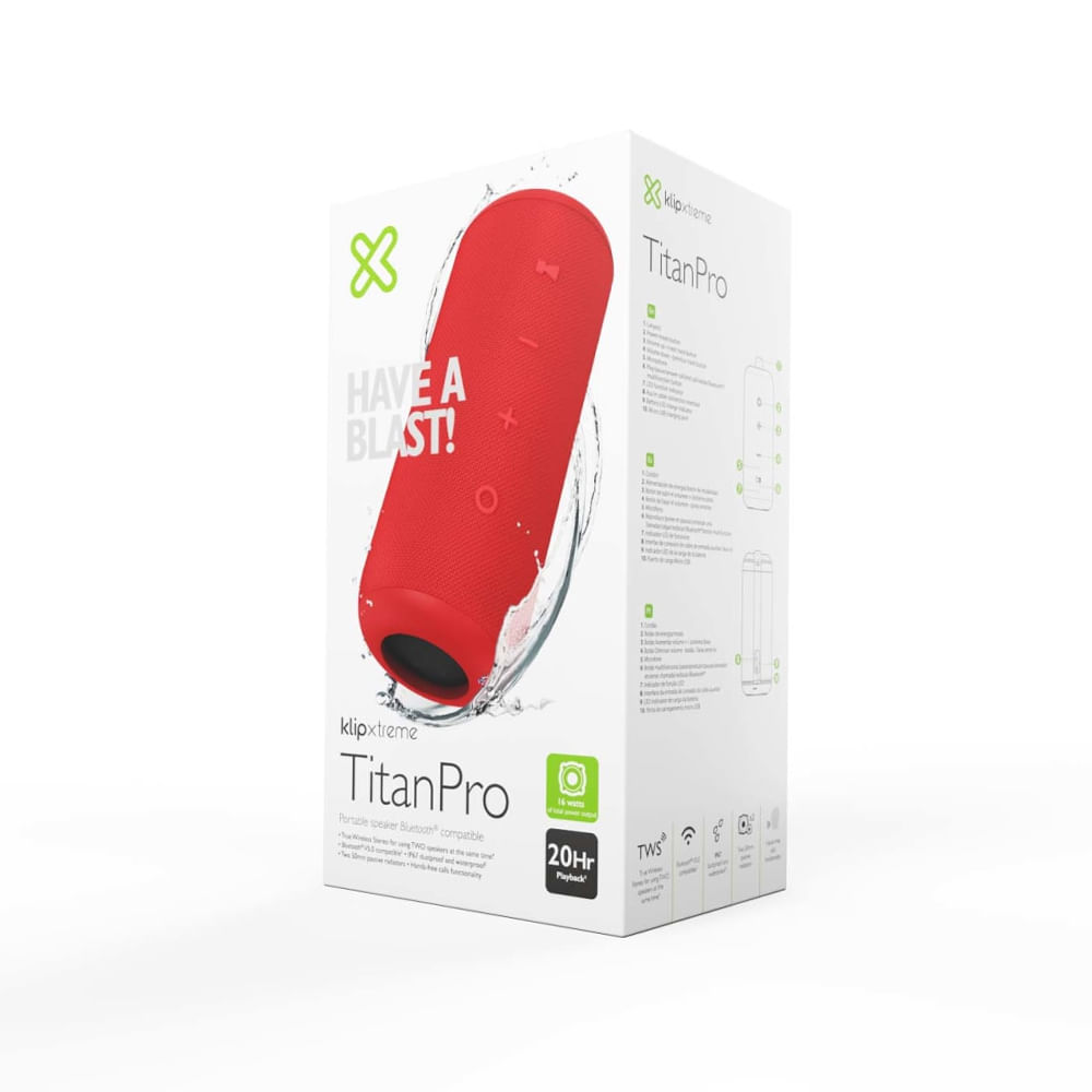 Altavoz portátil Klip Xtreme TitanPro KBS-300 inalámbrico Bluetooth rojo - sonido potente y diseño