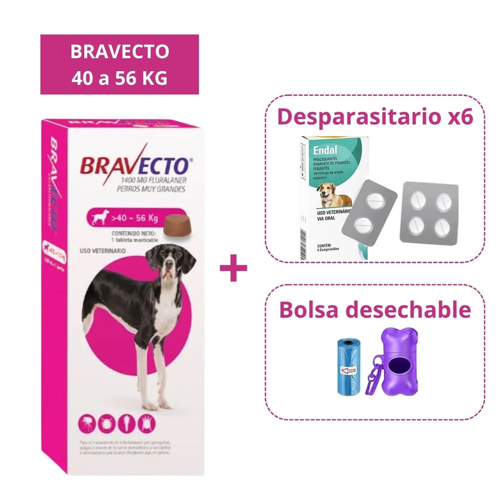 Antipulgas Bravecto para perros de 40 a56 kg más Gratis Endal y Bolsa desechable
