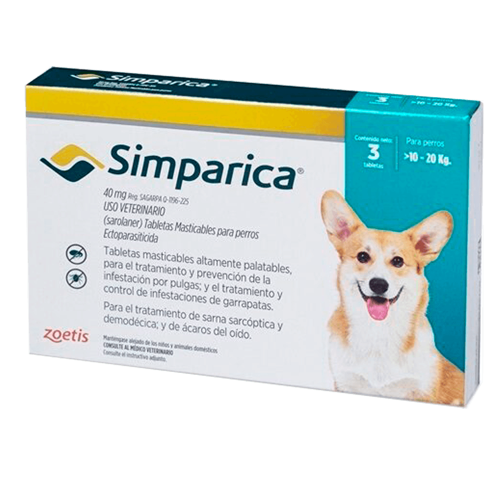Antipulgas para Perro Simparica 10 a 20 kg caja x3 Tabletas