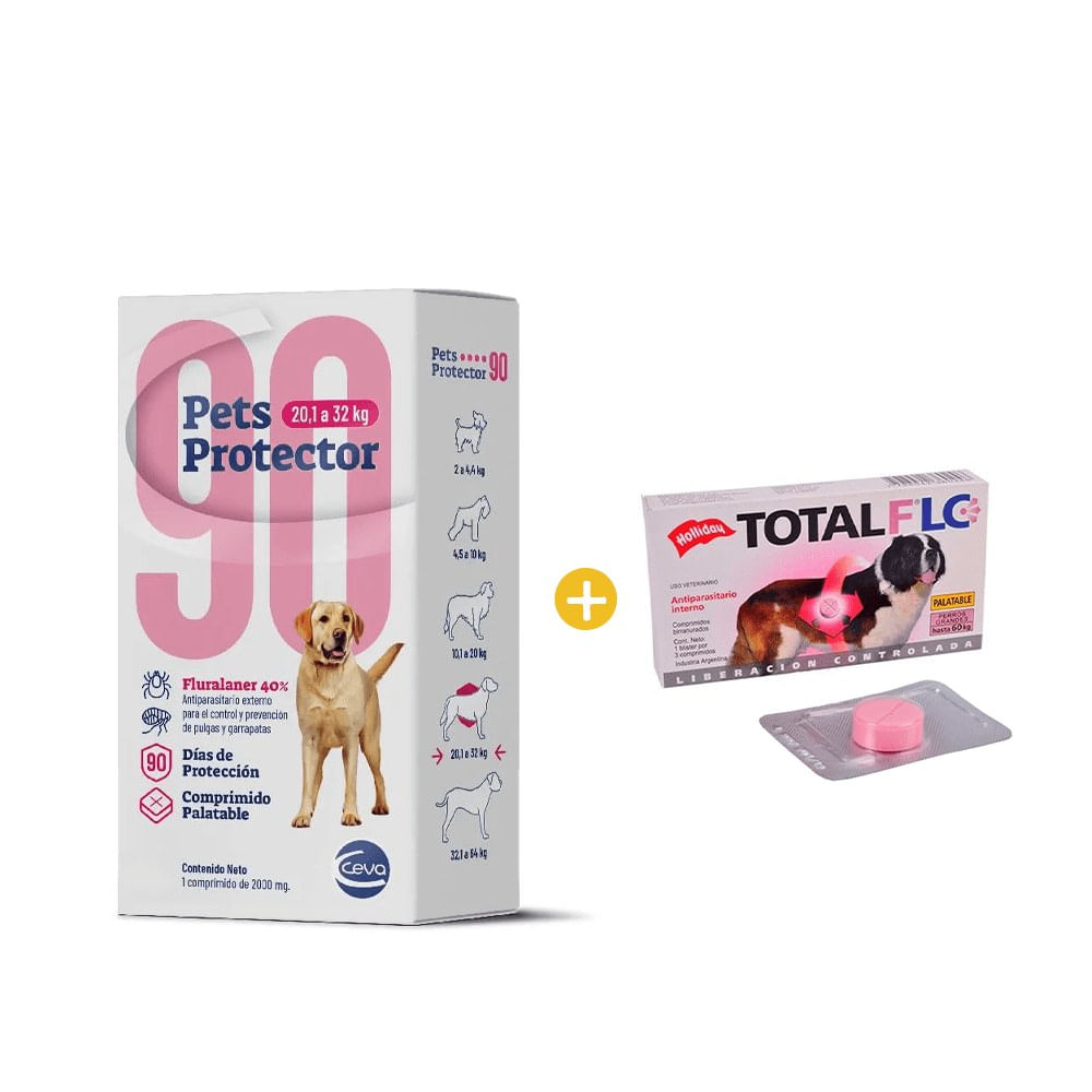 Antipulgas Pets Protector 90 20.1 a 32 Kg x 1 Comp. y GRATIS AP Holliday Total Full 1000Mg x 1 Comp