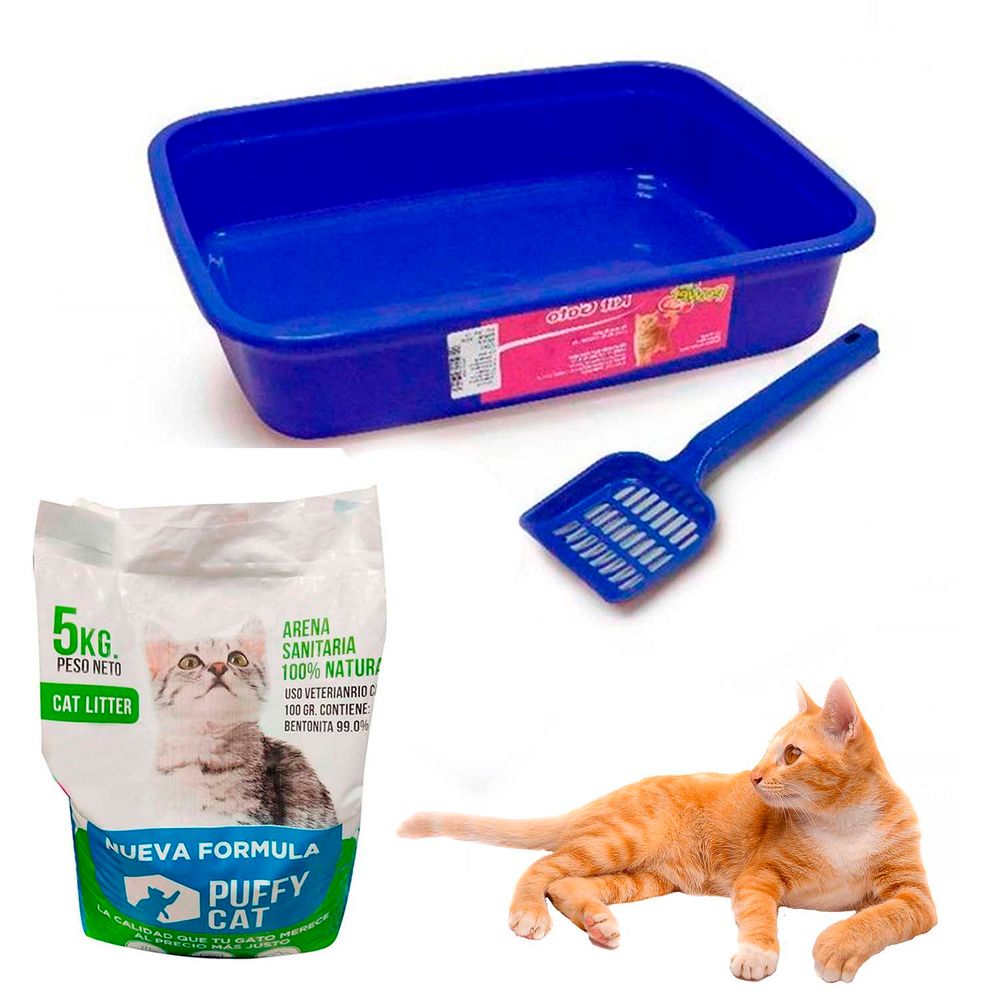 Arenero para Gato + Arena para Gato 5 kg + Pala Recogedor - Azul