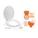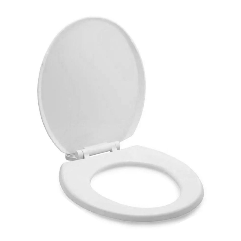 | Características | Asiento de baño hecho de 100% plástico ligero en su totalidad compuesto por el asiento propiamiente dicho y la tapa para el sanitorio o inodoro, de forma redonda, asiento no viene con amortiguadores de goma para evitar dañar la taza del sanitario, bisagras de plástico, viene con tuercas para anclar a la taza del sanitario, Tapa de caida lenta. |