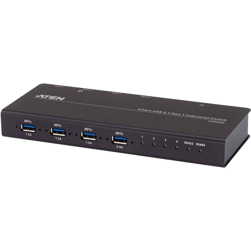 ATEN 4 x 4 USB 3.1 Gen-1 Hub Switch Industrial con Conexiones para 4 Computadoras, Selector de Puert