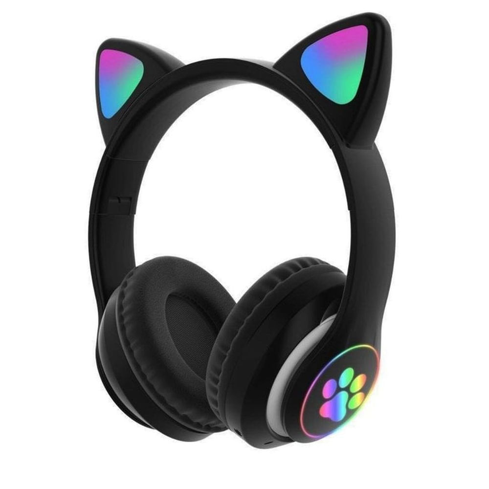 AUDIFONOS OREJAS DE GATO STN-28 CON LUCES LED Negro