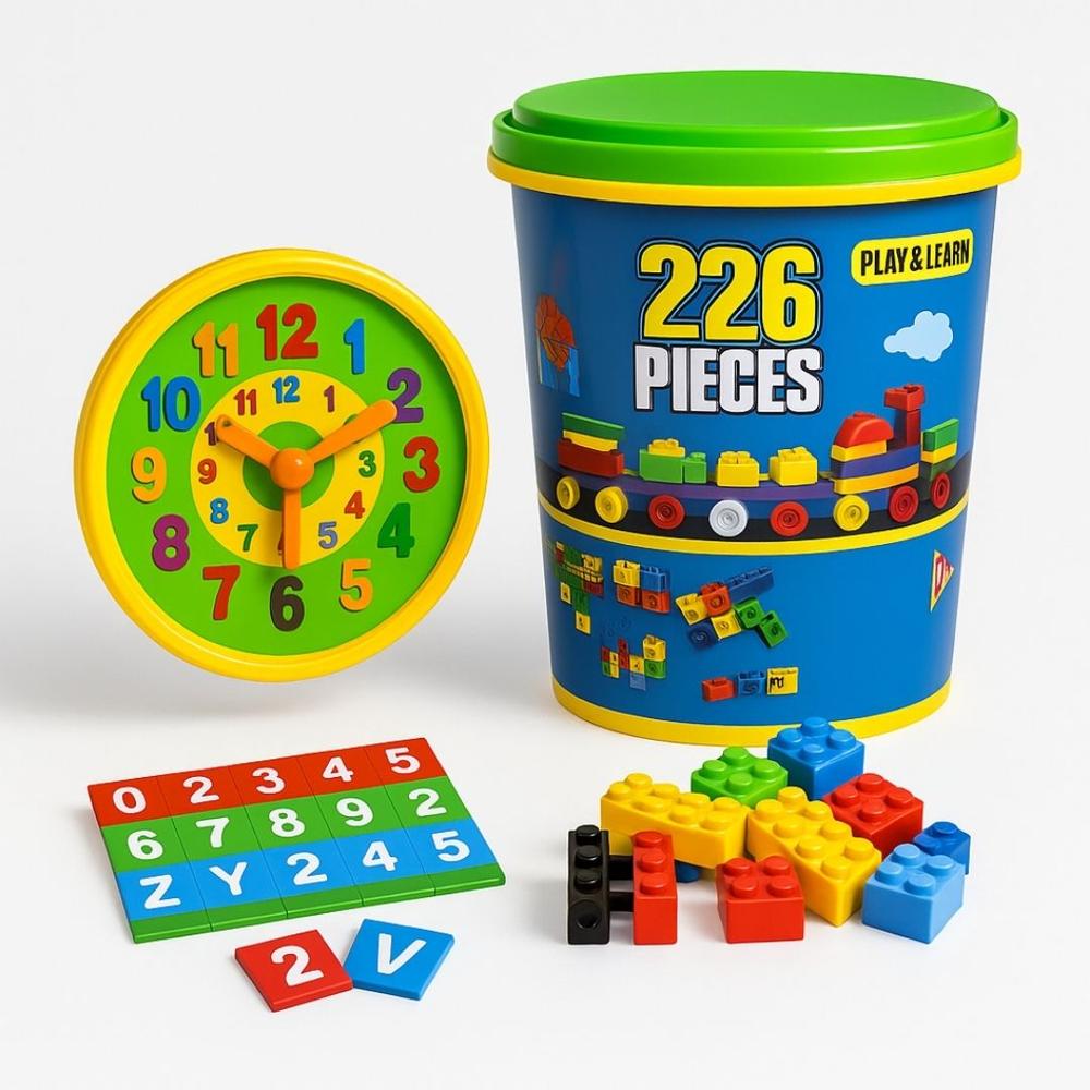 Balde Grande Didáctico Con Bloques 226Pzas Y Tapa De Reloj