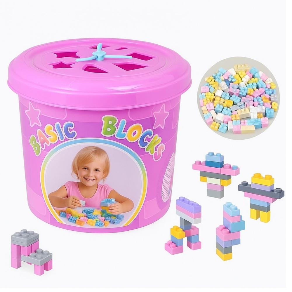 Balde Rosa Con Bloques 100Pzas Y Tapa De Reloj Para Niñas