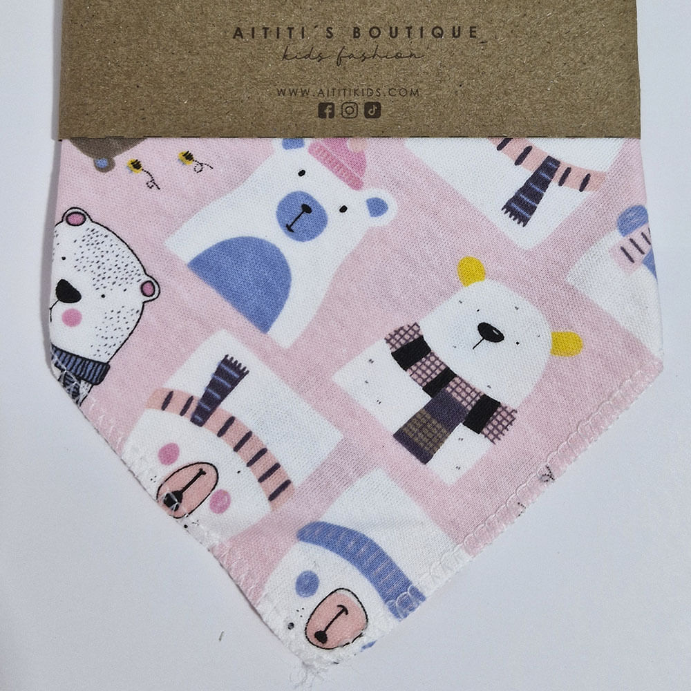 Bandana de algodón con diseño de osos color rosado para bebe RN hasta los 6m Aititi´s Kids