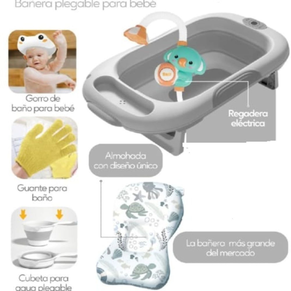Bañera Para bebes Con Regadera Cojin Guante Gorrito Cubeta Para Agua Gris - 20090SPLASH97