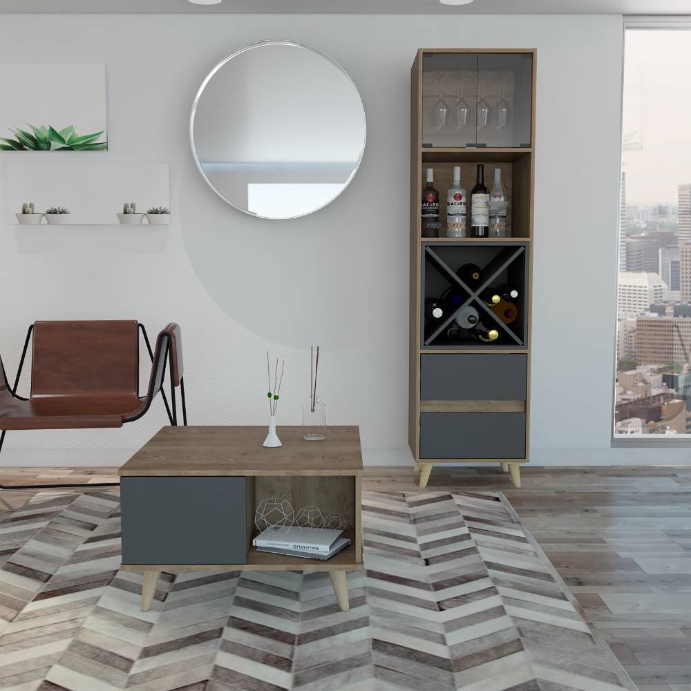 Bar Alto + Mesa Centro Salem - Miel / Plomo