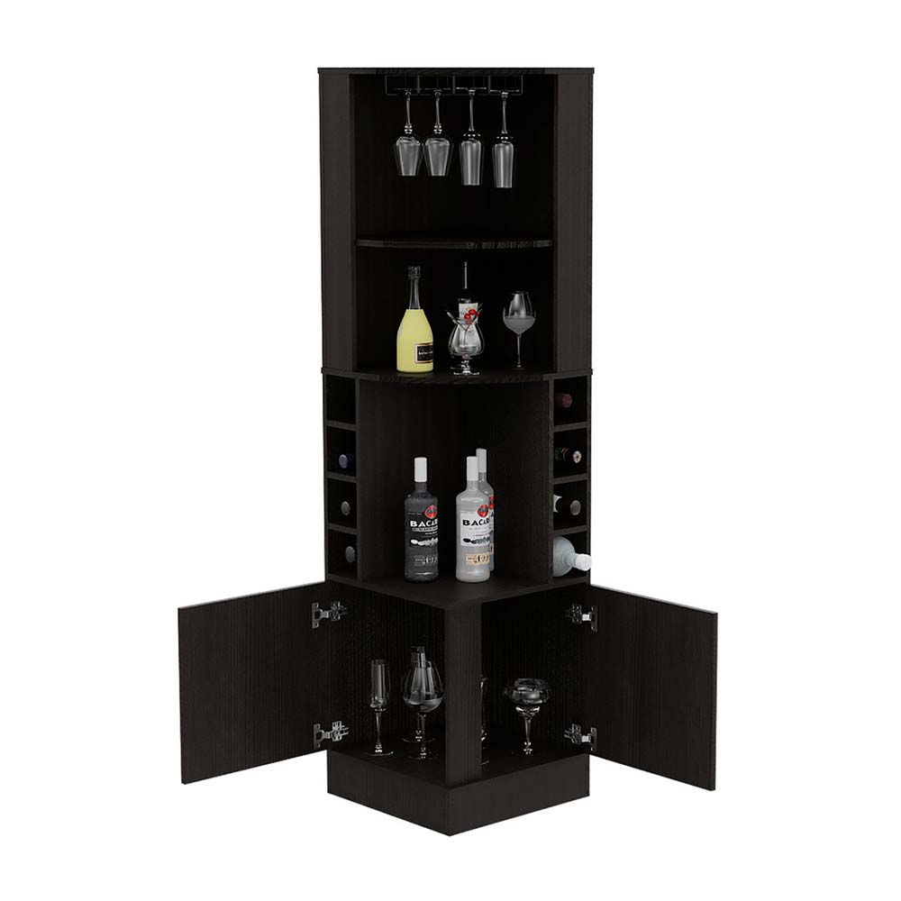 Bar Esquinero Melamina Negro Madera Kava Beijing Tuhome