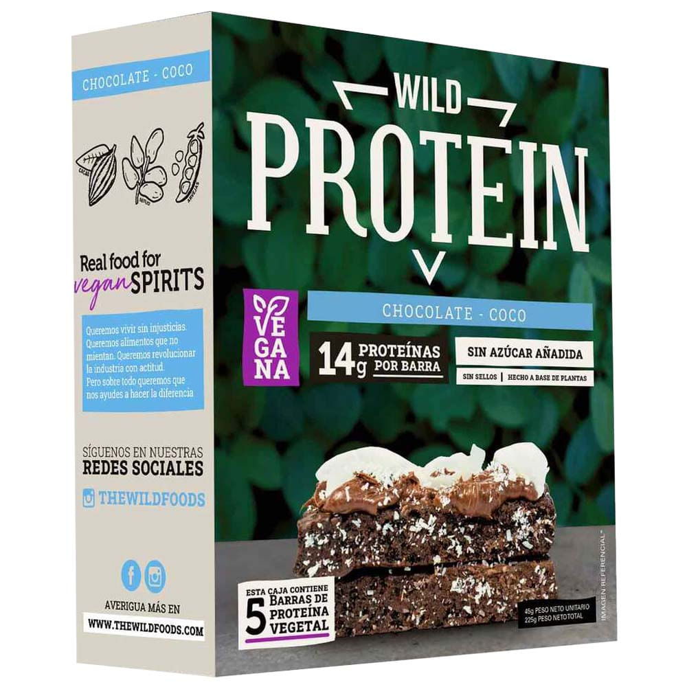 | Ingredientes | Crisp de soya 23% (aislado de proteína de soya, cacao, almidón de tapioca), dátiles, emulsionante (maltitol (SIN 965i)), aislado de proteína de arvejas 14%, maní, coco 8%, chocolate 7% (cacao en pasta, emulsionante (maltitol (SIN 965i)), incrementador de volumen (polidextrosa (SIN 1200)), emulsionante (lecitina de soya (SIN 322i)), emulsionante (polirricinoleato de poliglicerol (SIN 476)), edulcorante (sucralosa (SIN 955)), saborizante idéntico al natural),saborizante idéntico al natural. |