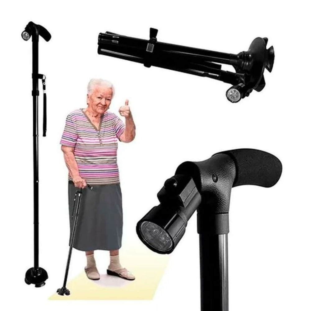 Bastón Plegable Con Luz LED Antideslizante Negro