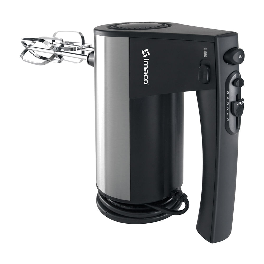 | Características | Cubierta de acero inoxidable de alta resistencia, diseño moderno, elegante y confortable. Cuenta con 10 velocidades para batidos y mezclas perfectas con un botón turbo. Cómodo guardacable para un mejor y fácil almacenamiento. Botón Eject para expulsar los batidores y mezcladores. Botón para expulsión de batidores. Canal para guardar el cable. |