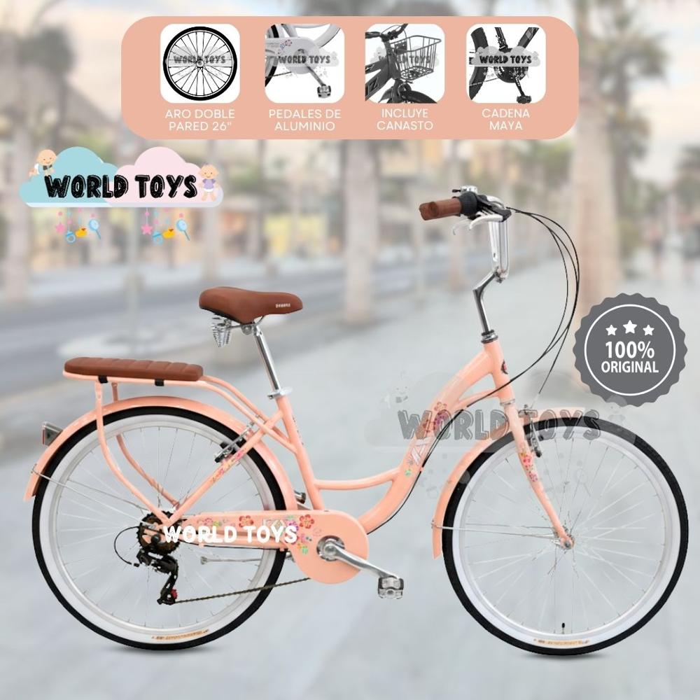 Bicicleta Campera Aro 26 FLORAL CAMPY con Canasta Melón