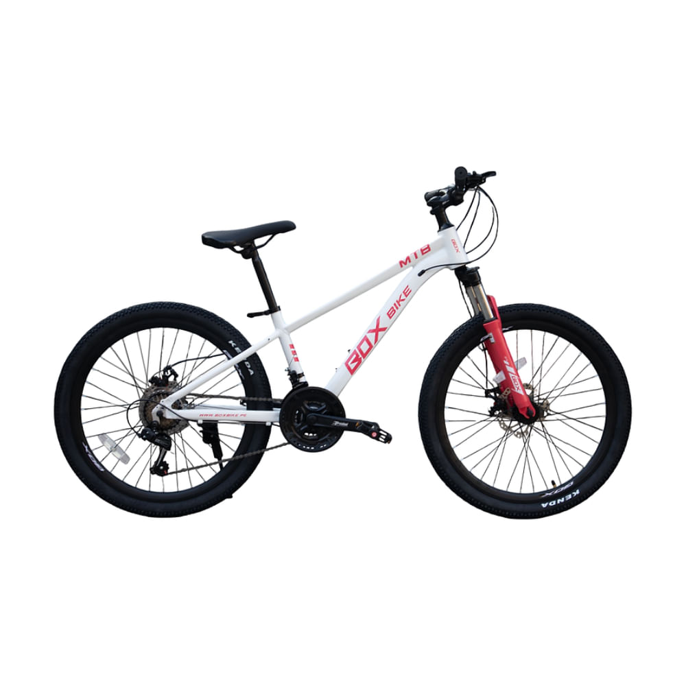 Bicicleta MTB de Aluminio Aro 24 con Suspensión Delantera y Cambios Shimano Blanco con Fucsia