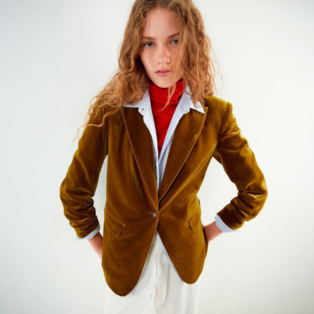 Blazer Terciopelo Recta Sfera Mujer Verde Oliva