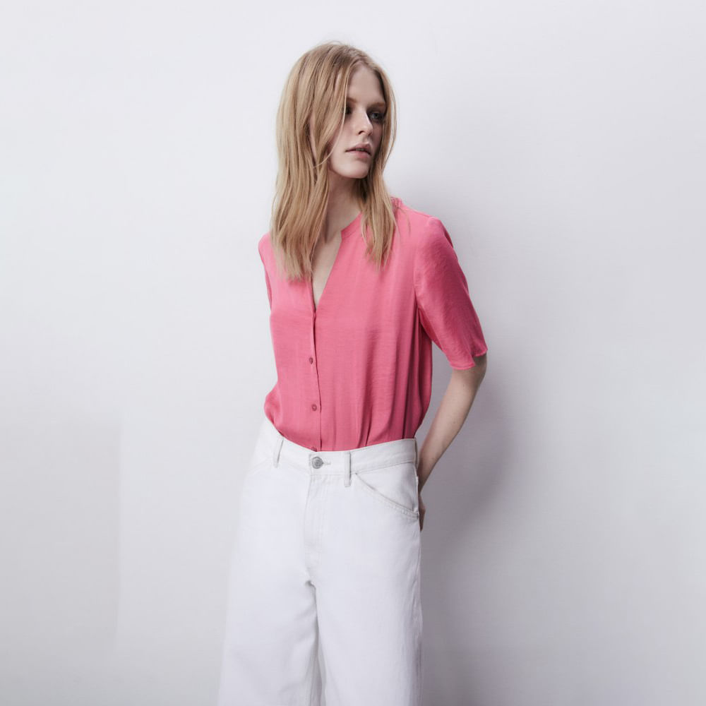 Blusa Básica Botones Sfera Mujer Rosa