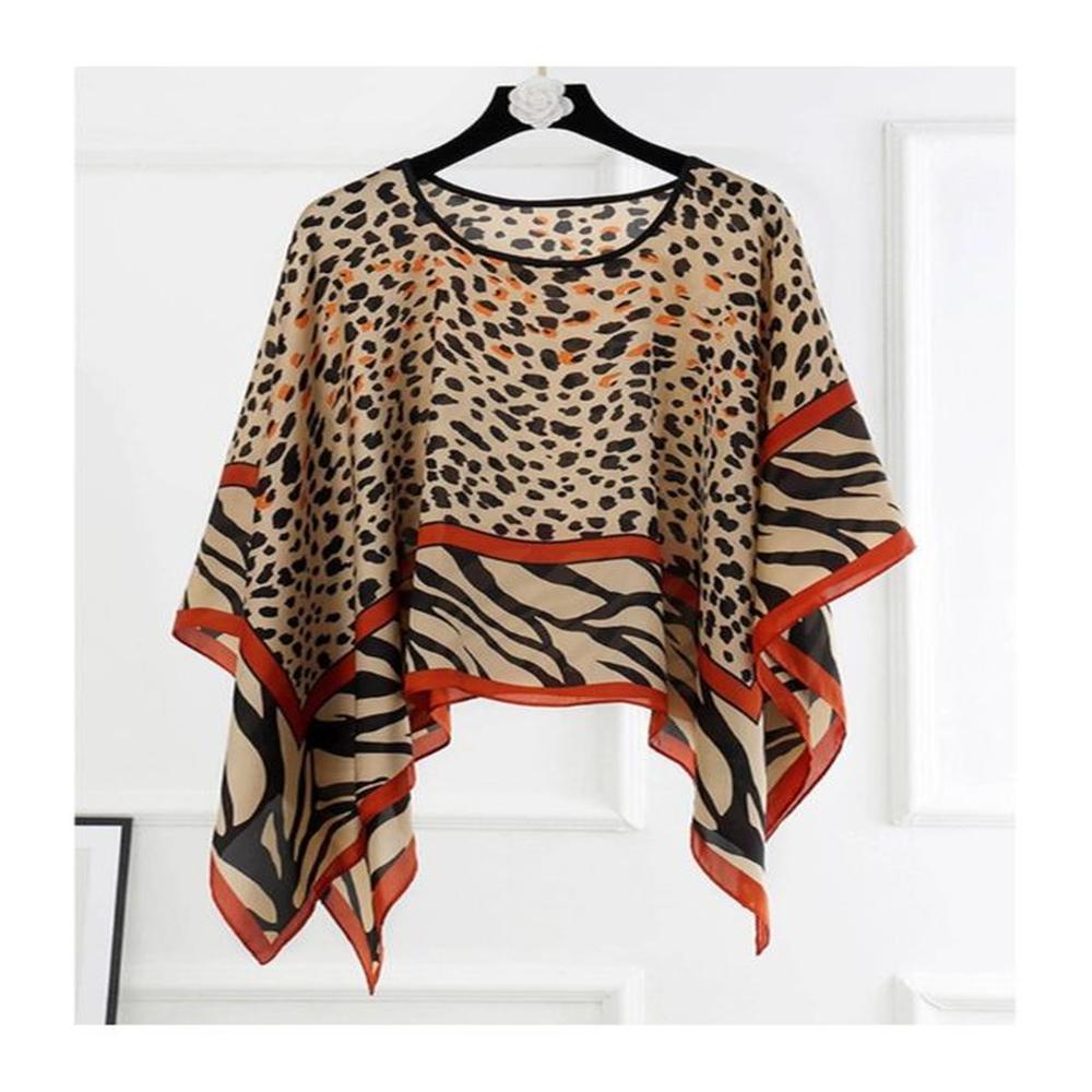 Blusa Chal Medarda tunica corta Estampado Leopardo Clásico