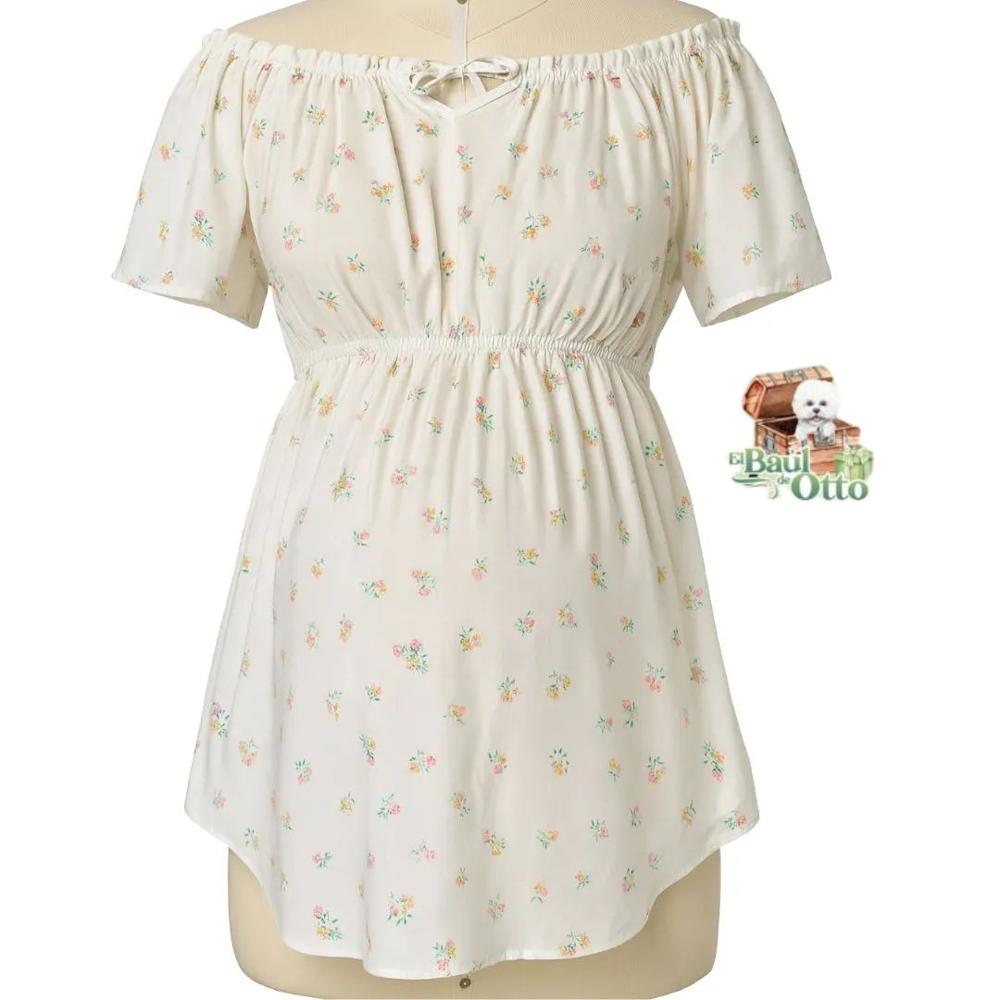 Blusa Coqueta Manga Corta Hombros Caído Lactancia Maternidad