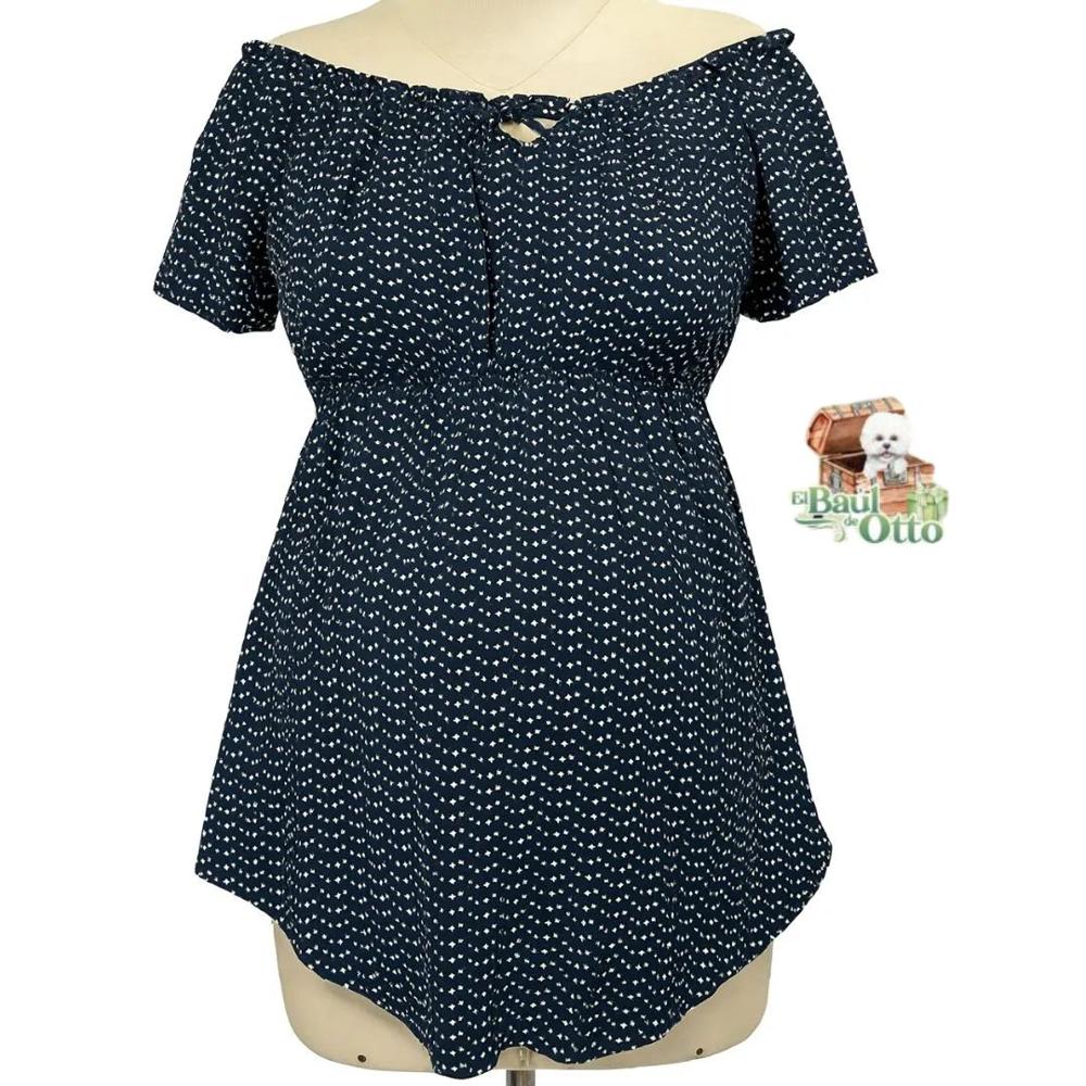 Blusa Coqueta Manga Corta Hombros Caido Lactancia Maternidad Azul con rayitas