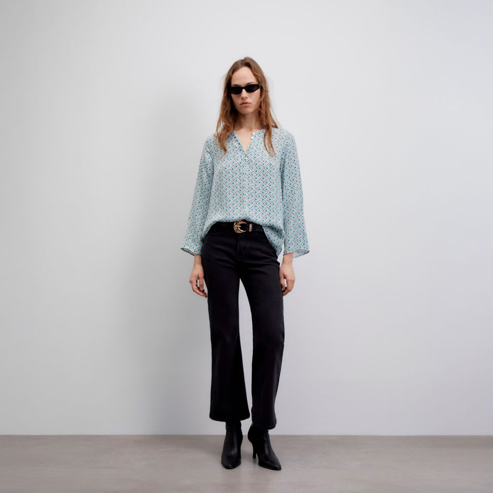 Blusa Mujer Sfera Fluida Estampada Verde