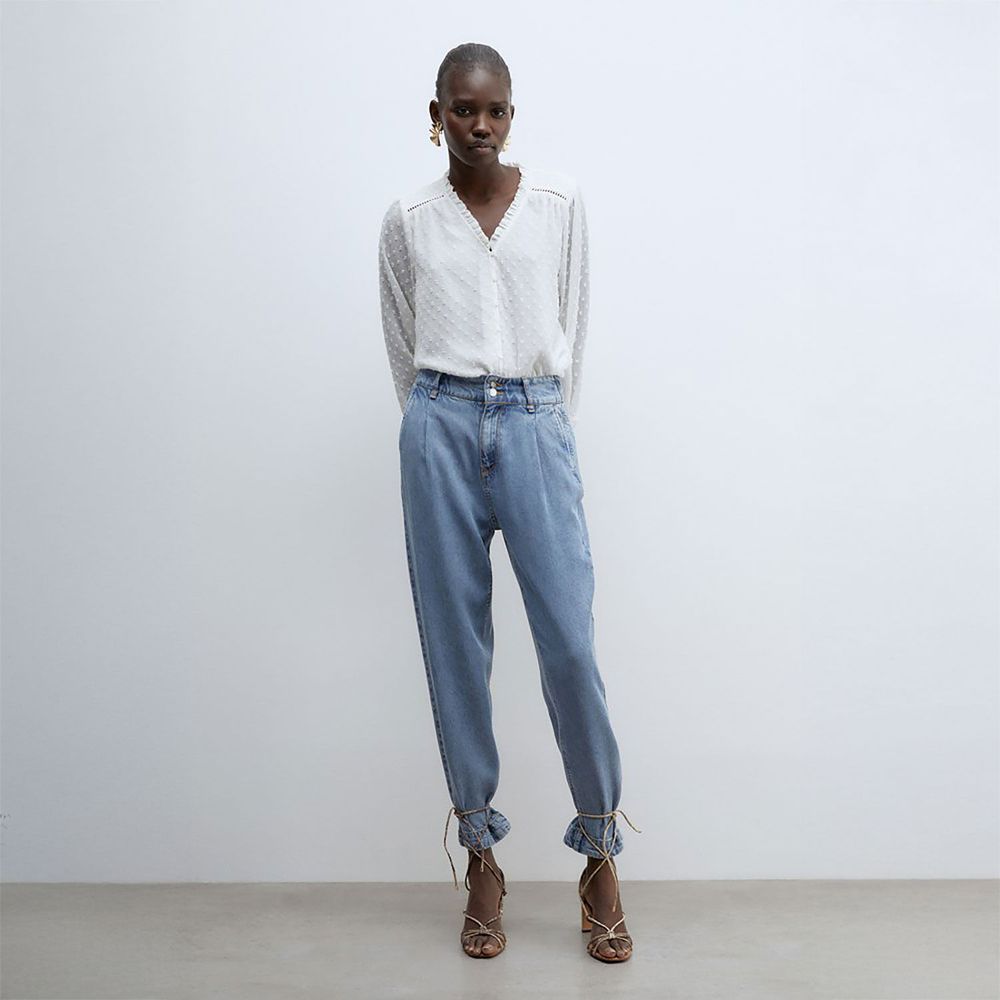 Blusa Mujer Sfera Plumetti Botones Ml Blanco