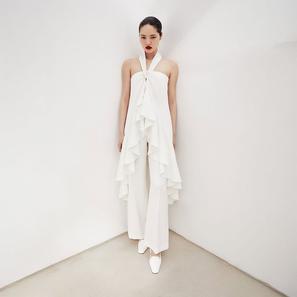 Blusa Mujer Sfera Top Largo Volantes Blanco