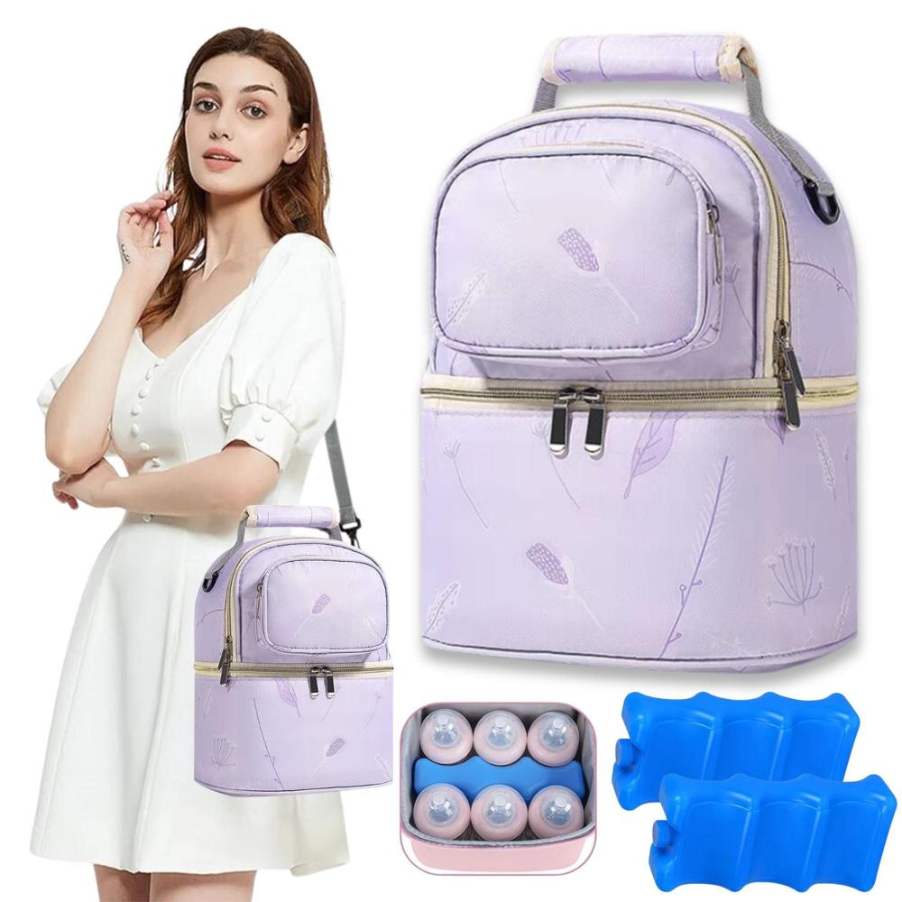 Bolso Termico Cooler Bag Conservador de Leche Materna Lila para 6 Biberones + 2 Porta Hielo con Gel