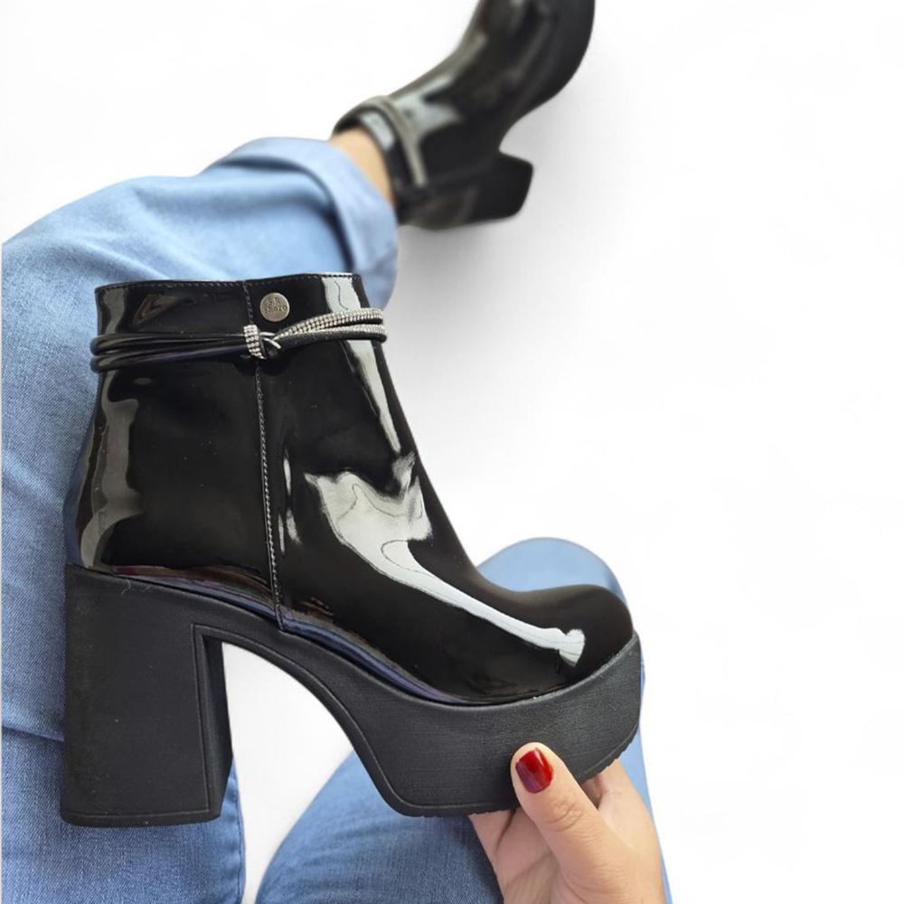 Bota Mujer Pu Taco 9 Charol 1177 5C-68 Color Negro