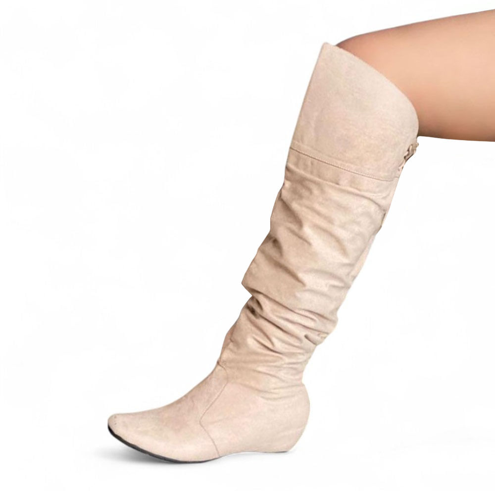 Bota Mujer Taco Incorporado 3 Gamuza 1299 5C-68 Color Beige