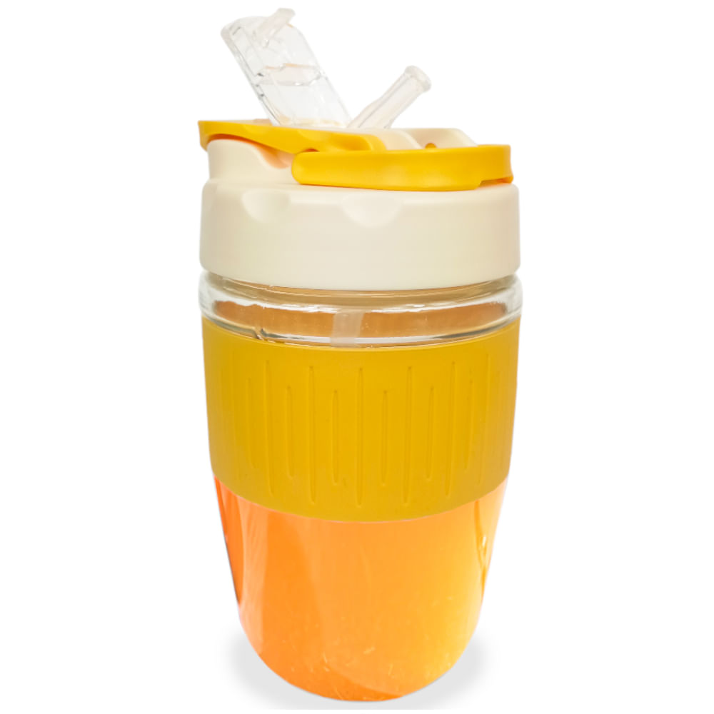 Botella Tomatodo de Vidrio Doble Boquilla Amarillo C