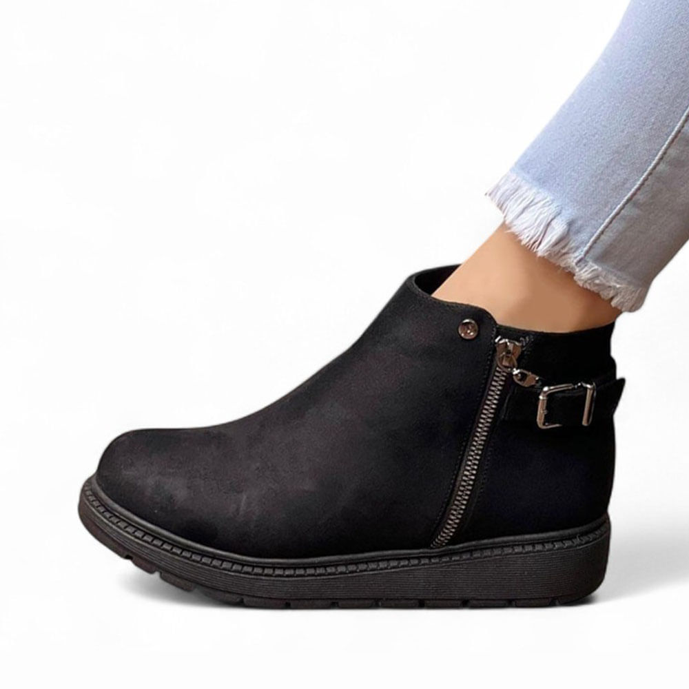 Botin Mujer Acolchada Gamuza Cierre 1299 5C-55 Color Negro