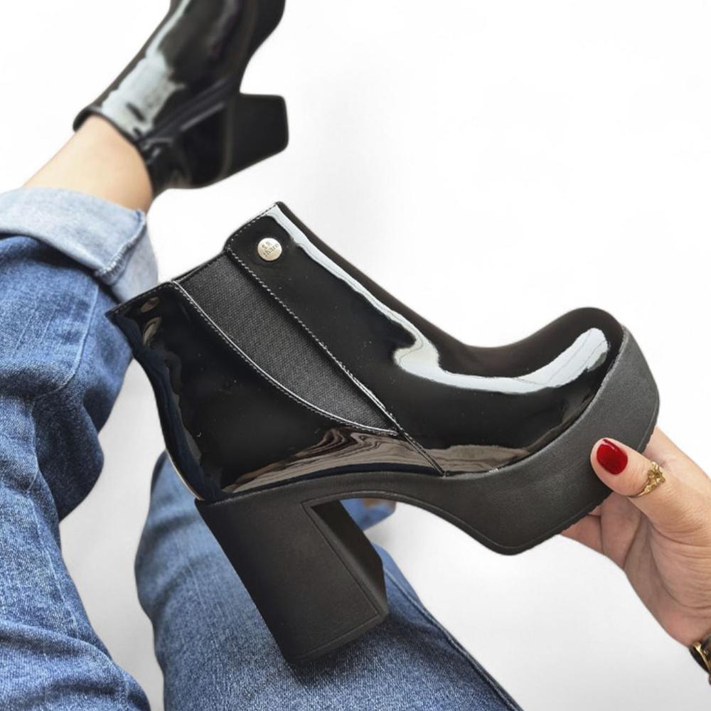 Botin Mujer Planta Spanso Taco 1177 Charol 5C-68 Color Negro