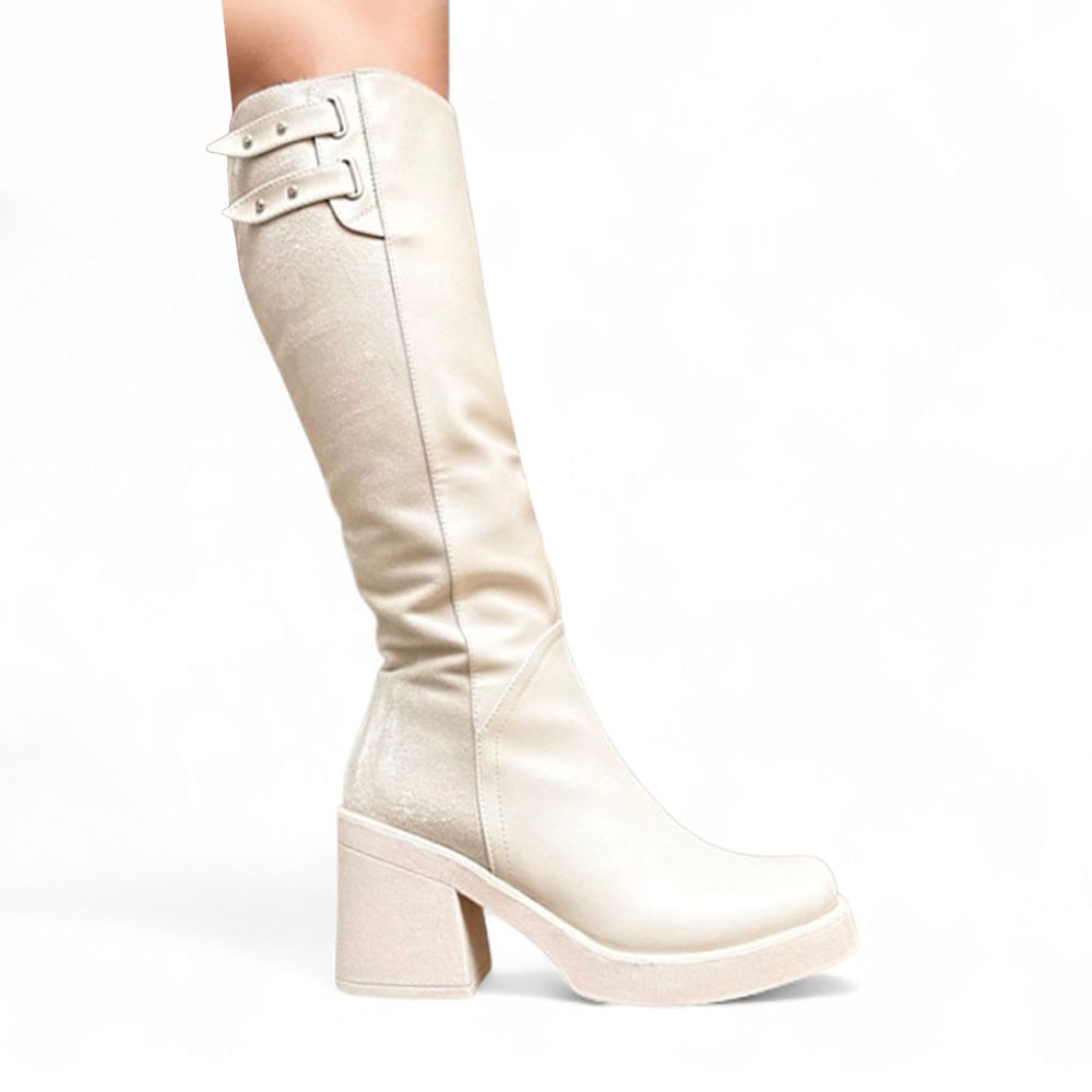 Botin Mujer Punta Cudrada Taco 7 2086L-75 Color Perla