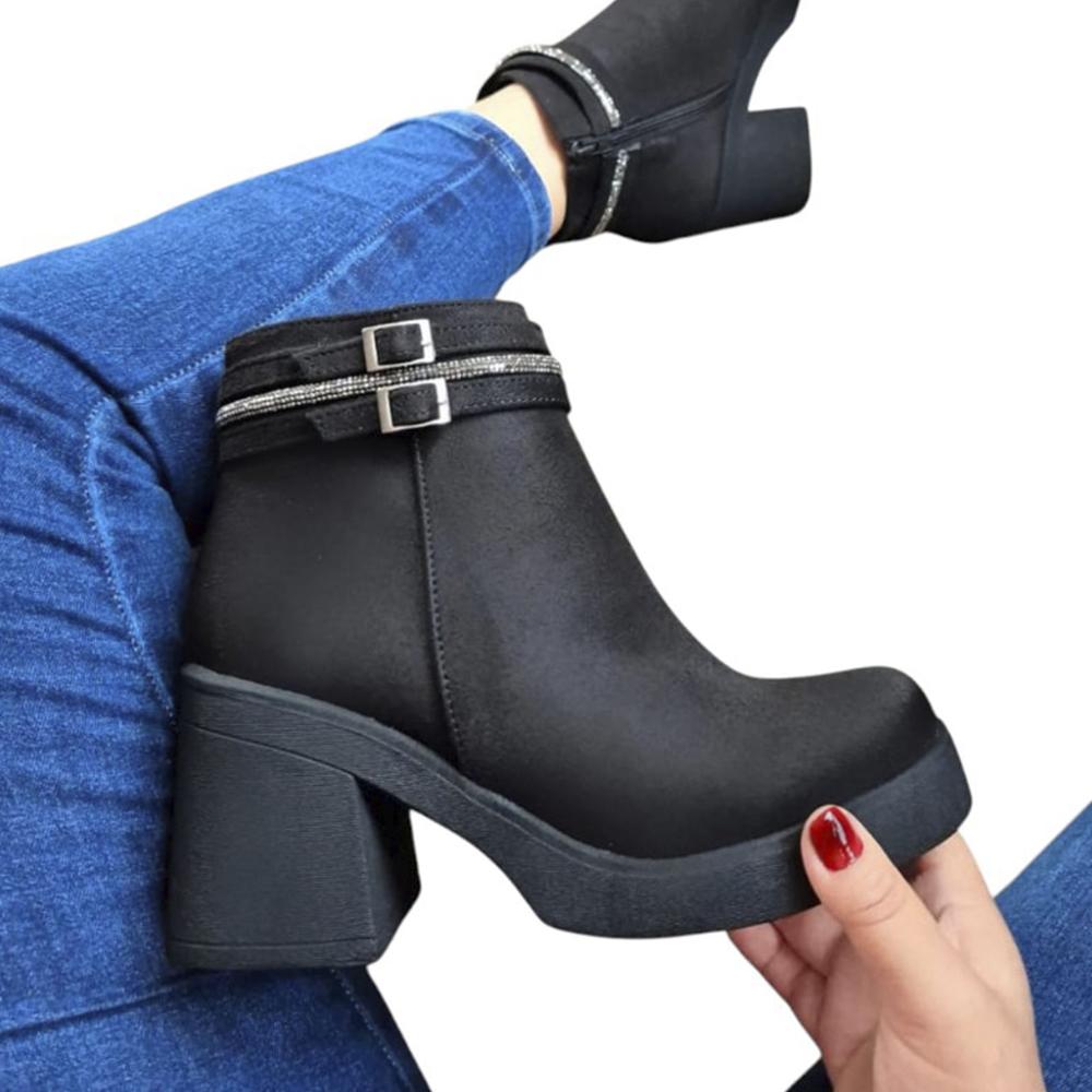 Botin Mujer Taco 7 Gamusa 1177 5C-63 Color Negro