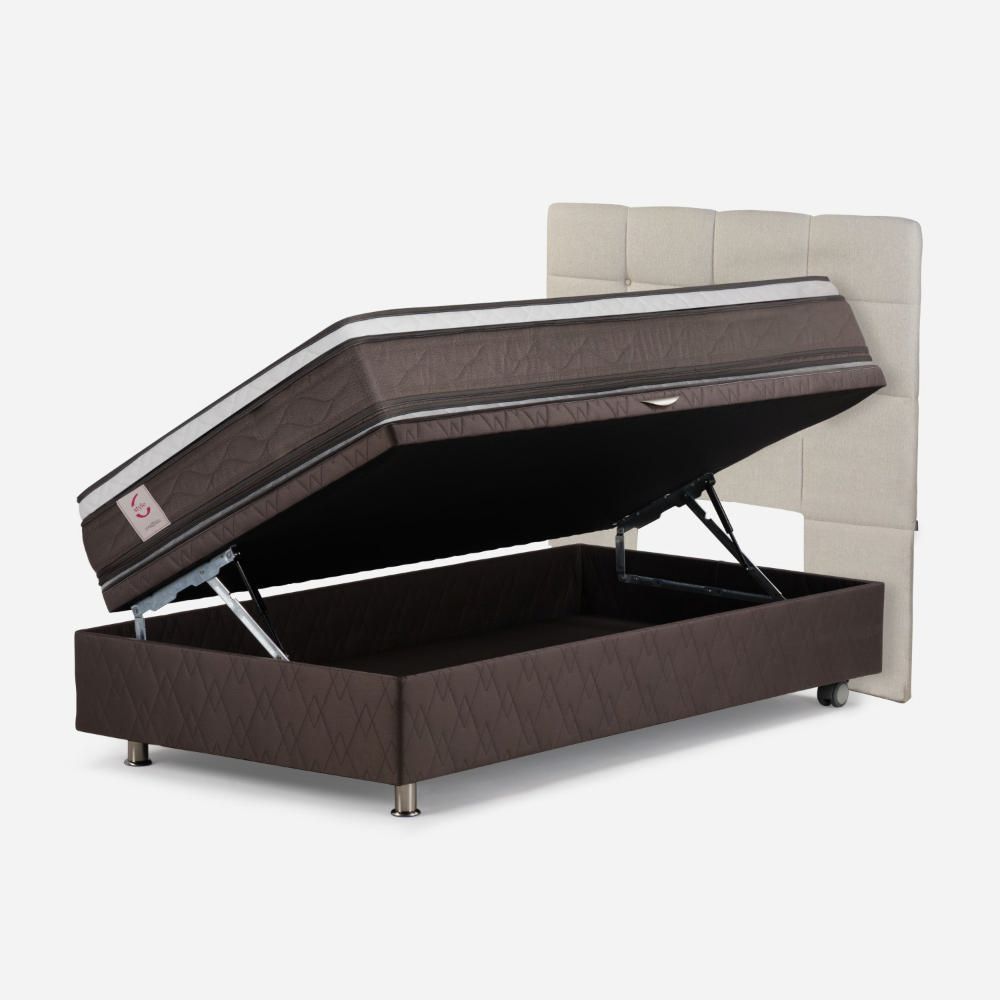 | Beneficios | Este producto ofrece en su base una generosa caja capaz de almacenar una gran cantidad de elementos. Además, por medio de una bisagra de empuje, mecanismo de fácil uso, no exige mayor esfuerzo al levantar la tapa de la base (con el colchón sobre ella) para acceder al interior del Boxet. Adicionalmente la base de este modelo incluye 2 patas metálicas de gran acabado mejorando su presentación general. |