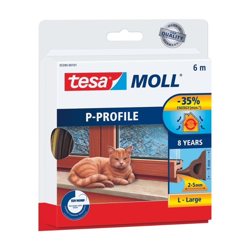 | Características | A lo largo del tiempo, los marcos de las ventanas pierden su resistencia y su capacidad de bloquear de forma fiable el aire frío. El burlete de caucho Perfil P de tesamoll es un burlete adhesivo hecho especialmente para cerrar esos huecos ocultos típicos de las ventanas más antiguas. Sirve como cortavientos eficaz que solo tiene que pegarse a lo largo del marco de la ventana para que proporcione un efecto de sellado de larga duración con el que poder ahorrar hasta un 35 % de sus costos de energía. El burlete de caucho de tesamoll® garantiza que funcione perfectamente durante al menos 8 años. |