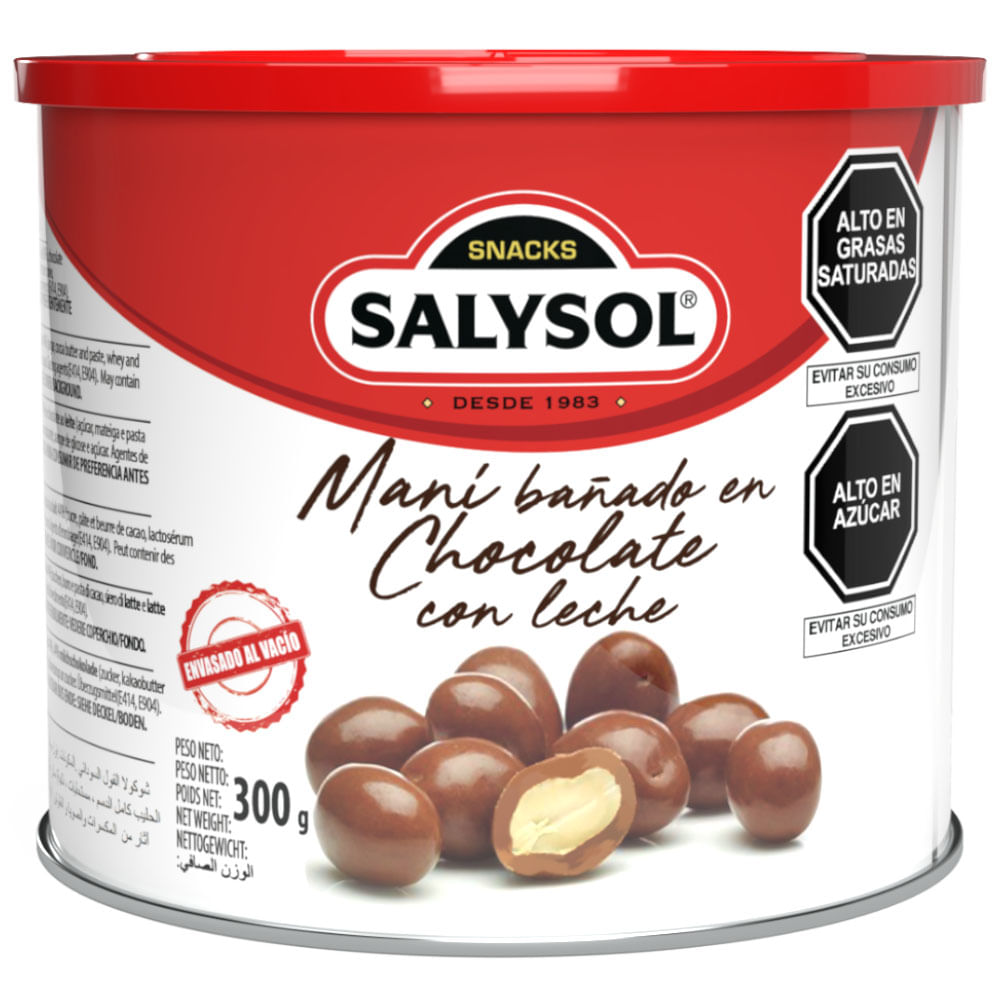 | Ingredientes | CACAHUETE, chocolate con LECHE 44% (azúcar, manteca y pasta de cacao, suero de LECHE y LECHE entera en polvo, emulgente (E322, E476), aroma), azúcar, jarabe de glucosa, agente espesante (E414) y agente de recubrimiento (E904) Cacao mínimo 25%. |