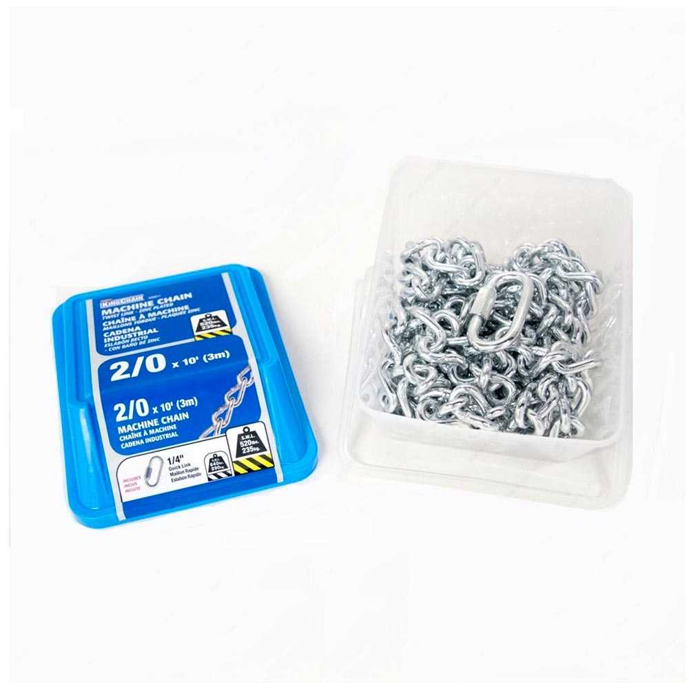 Cadena industrial 1/8" zinc eslabón torcido caja plástica 3m Kingchain®