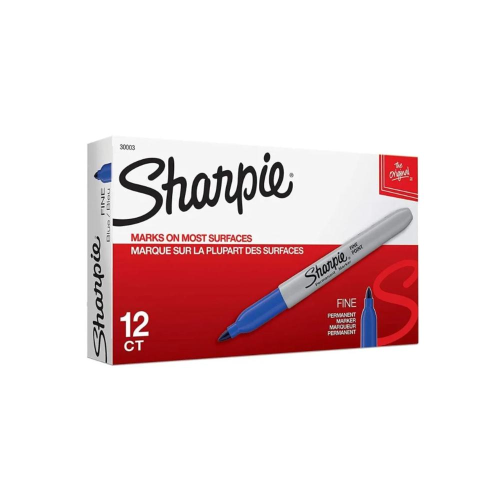 Caja de 12 Marcadores Permanentes Sharpie Punta Fina Azul