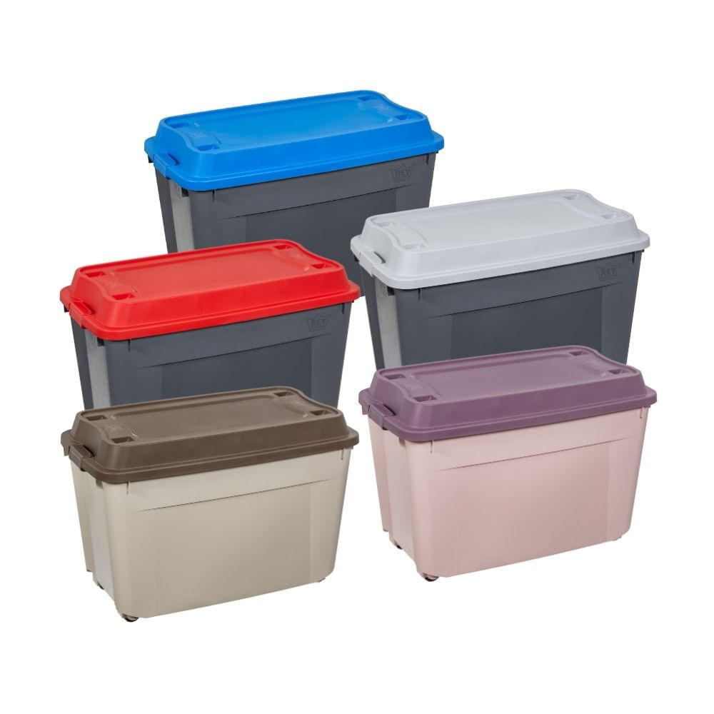 | Características | Cuenta con 4 ruedas y insertos en la tapa que permite el apilamiento. |