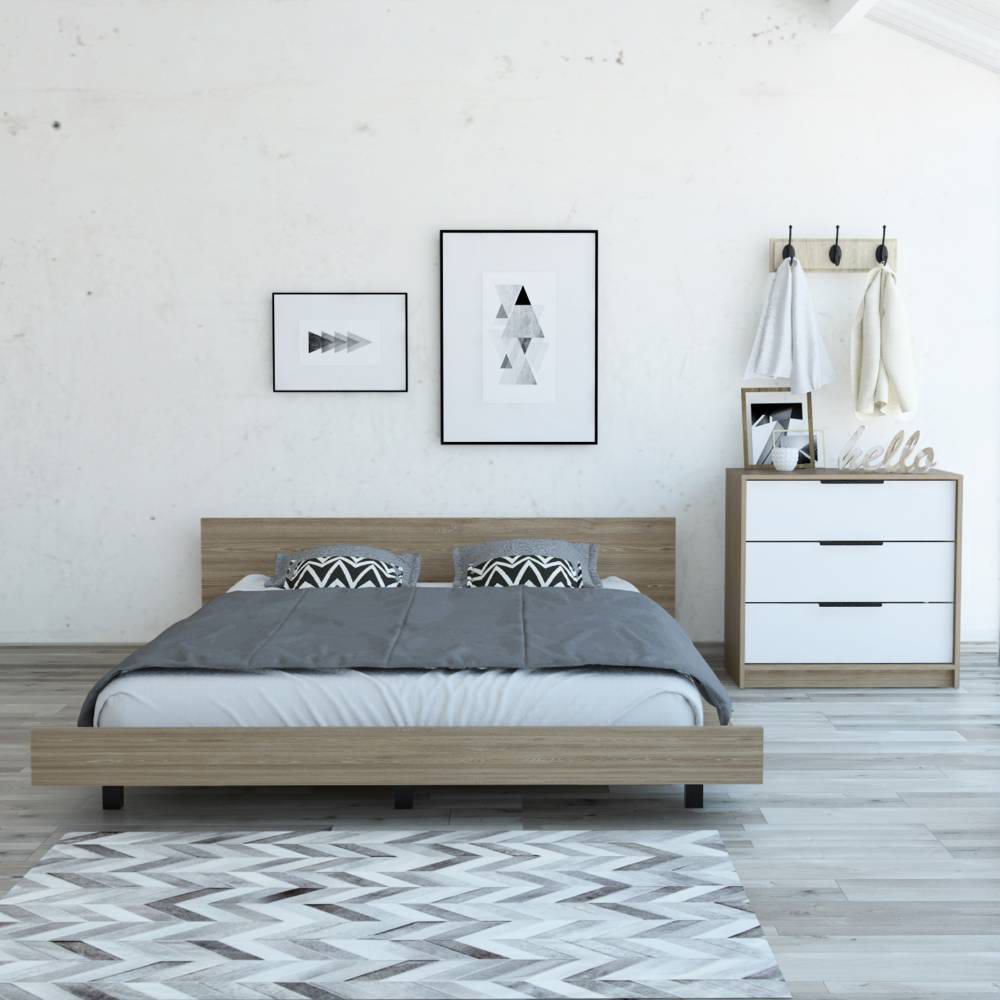 Cama 2 Plazas + Comoda 3 Cajones - Miel / Blanco