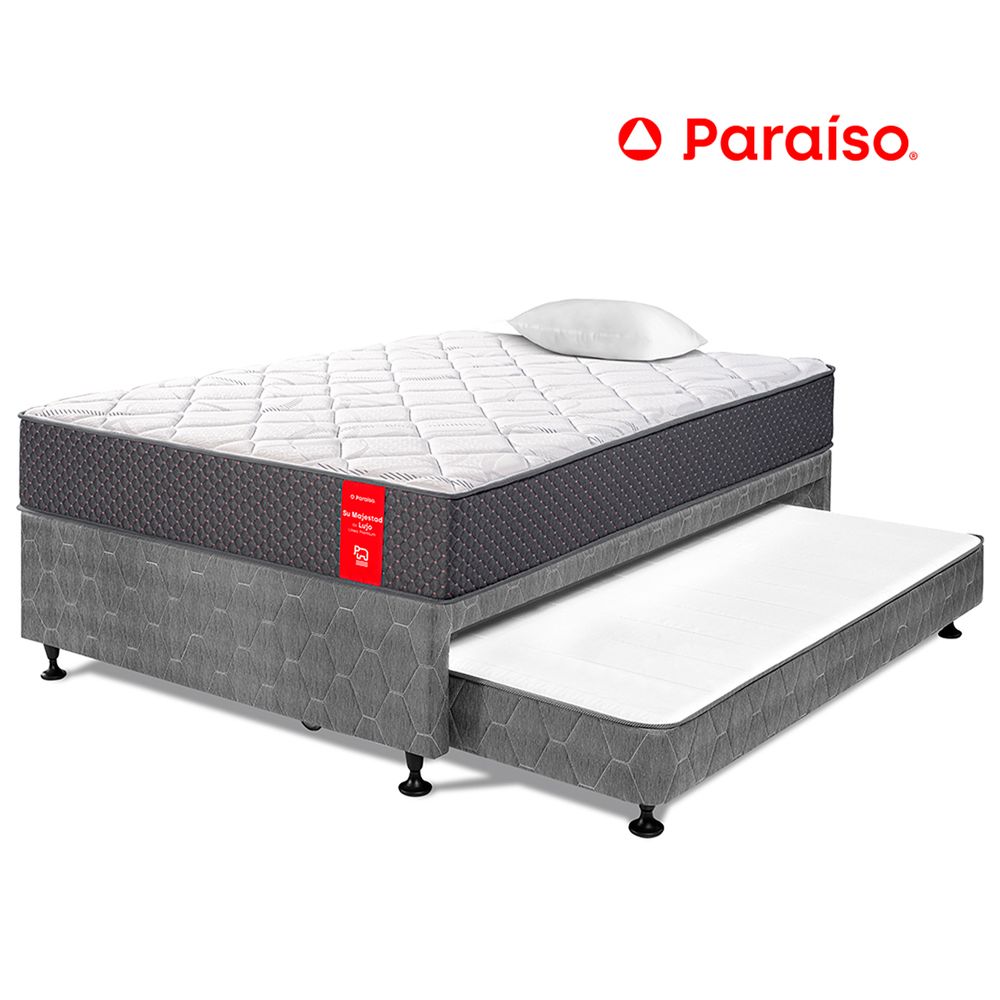 | Beneficios | Elaborado con espumas Zebra y resortes Cosisoft, Su Majestad está cubierto con tela tejido de punto, suave al tacto, en la tapa y resistente tela Jacquard en la parte inferior del colchón. |